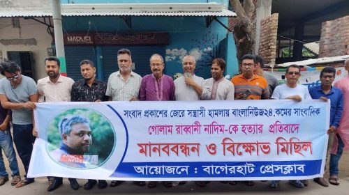 সাংবাদিক নাদিমের হত্যাকারীদের ফাঁসির দাবিতে বাগেরহাটে মানববন্ধন