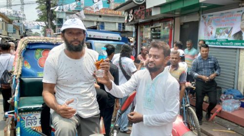ঝালকাঠিতে জাতীয় শ্রমিক লীগ জেলা শাখার উদ্যোগে পানি, স্যালাইন, শরবত ও ক্যাপ বিতরণ