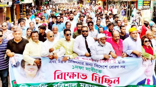 খালেদা জিয়ার উন্নত চিকিৎসার দাবিতে বরিশালে বিএনপি’র বিক্ষোভ