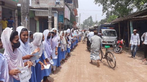 সাদুল্লাপুর বিদ্যা নিকেতনের পরিচালক কর্তৃক ছাত্র ছাত্রী নির্যাতনের প্রতিবাদে মানববন্ধন