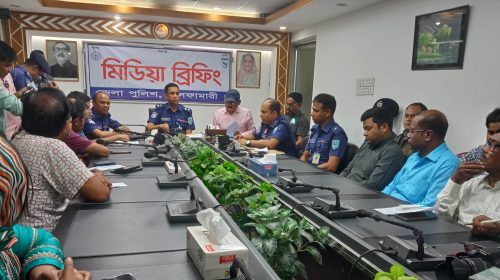 নীলফামারীতে অটোভ্যান ছিনতাইকারী চক্রকে গ্রেফতারে পুলিশ সুপারের প্রেস ব্রিফিং।