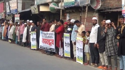 ফিলিস্থিনের উপর ইসরাইল বর্বরতা  ও মানবাধিকার লঙ্ঘনের প্রতিবাদেে গাইবান্ধায় সাধারণ মানুষের মানববন্ধন