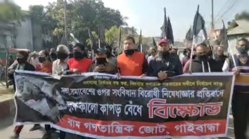গাইবান্ধায় মুখে কালো কাপড়   বেঁধে বিক্ষোভ