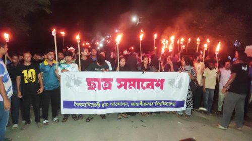 শিক্ষার্থীদের ওপর হামলার প্রতিবাদে জাবিতে মশাল মিছিল