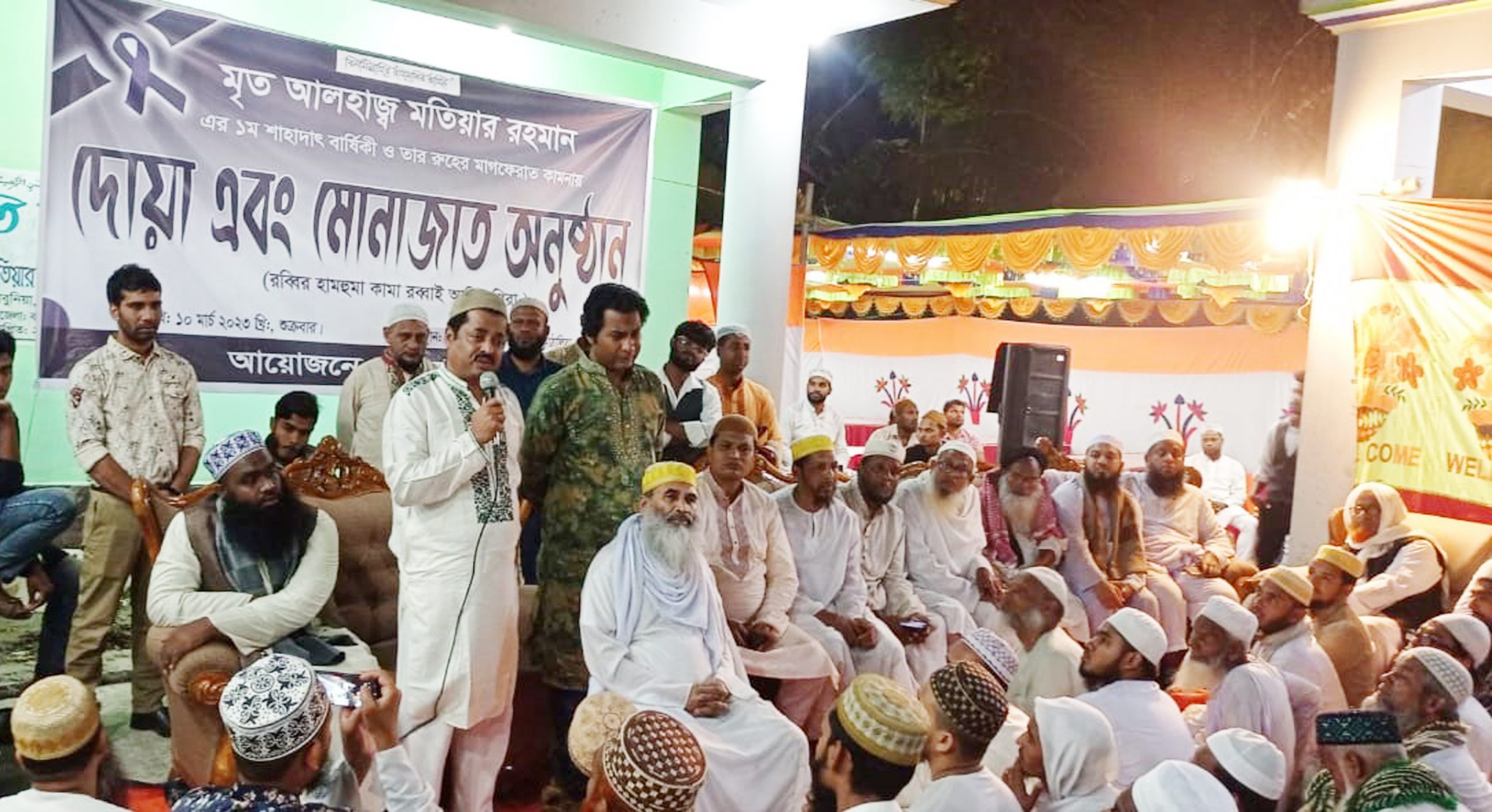 শুক্রবার (১০ মার্চ) বাদ মাগরিব ঝালকাঠির কাঠালিয়া উপজেলার মরহুমের নিজবাড়ি মতি মহলে পরিবারের উদ্যোগে এই আয়োজনে মরহুমের আত্মার মাগফেরাত কামনা করে দোয়া করা হয়। অনুষ্ঠানে কাঠালিয়া উপজেলা পরিষদের চেয়ারম্যান মোঃ এমাদুল হক মনির, রাজাপুর উপজেলা পরিষদের চেয়ারম্যান মোঃ মনিরুজ্জামান মনির, কাঠালিয়া থানার অফিসার ইনচার্জ মুরাদ আলী, রাজাপুর থানার অফিসার ইনচার্জ পুলক চন্দ্র রায়, ইউপি চেয়ারম্যান মোঃ মিঠু সিকদারসহ দুই উপজেলার ইউপি চেয়ারম্যান ও ইউপি সদস্যরা উপস্থিত ছিলেন।