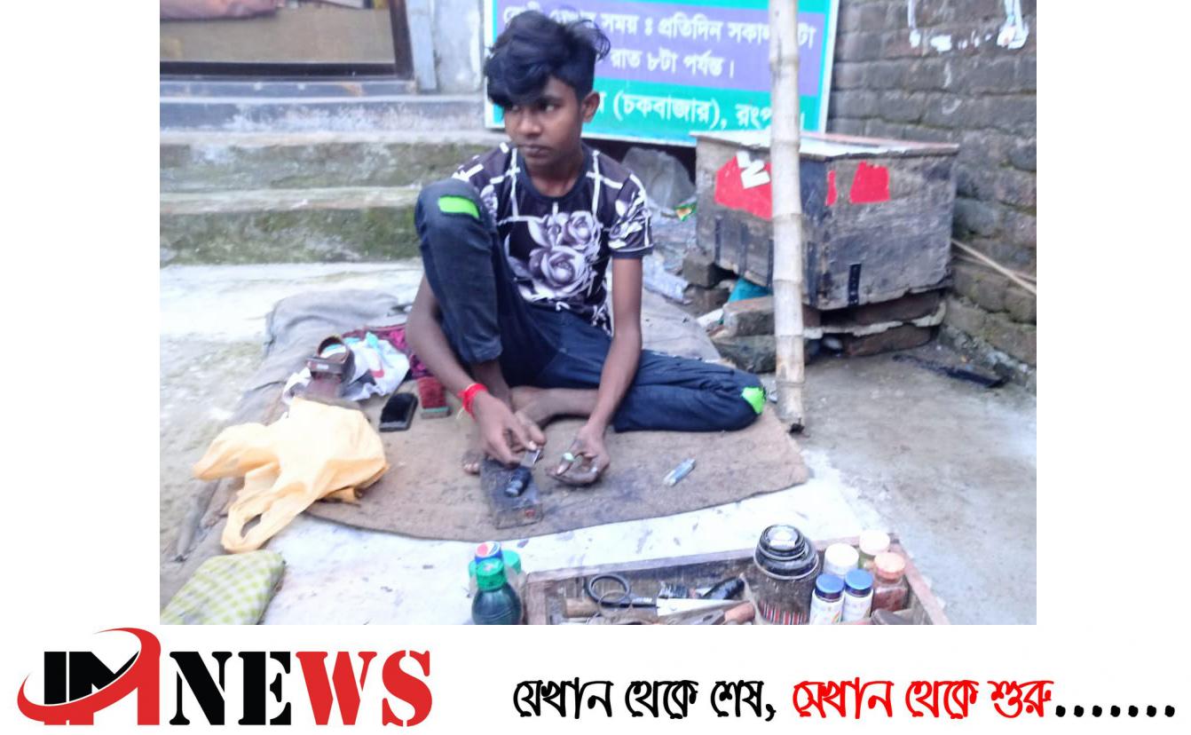 রাস্তার পাশে   মুদিখানার দোকানের সামনে পাটের ছলা  বিছিয়ে একটি বাক্স নিয়ে বসে আছেন হৃদয়। সঙ্গে রয়েছে সুই সুতা, চিমটি,  কাঠের তক্তা,   চামড়া  ও সুতা চামড়া কাটার যন্ত্র আর রং (কালি)। ওইসব দিয়েই ছেড়া জুতোর সেলাই আর কালি দিয়ে সুন্দরভাবে পরিপাটি করে দেন  হৃদয়। রংপুর জেলার চকবাজার মসজিদ সংলগ্ন মোড়ে রাস্তার পাশে মুচির কাজ করেন ১৪ বছর বয়সী  তরুণ হৃদয়।