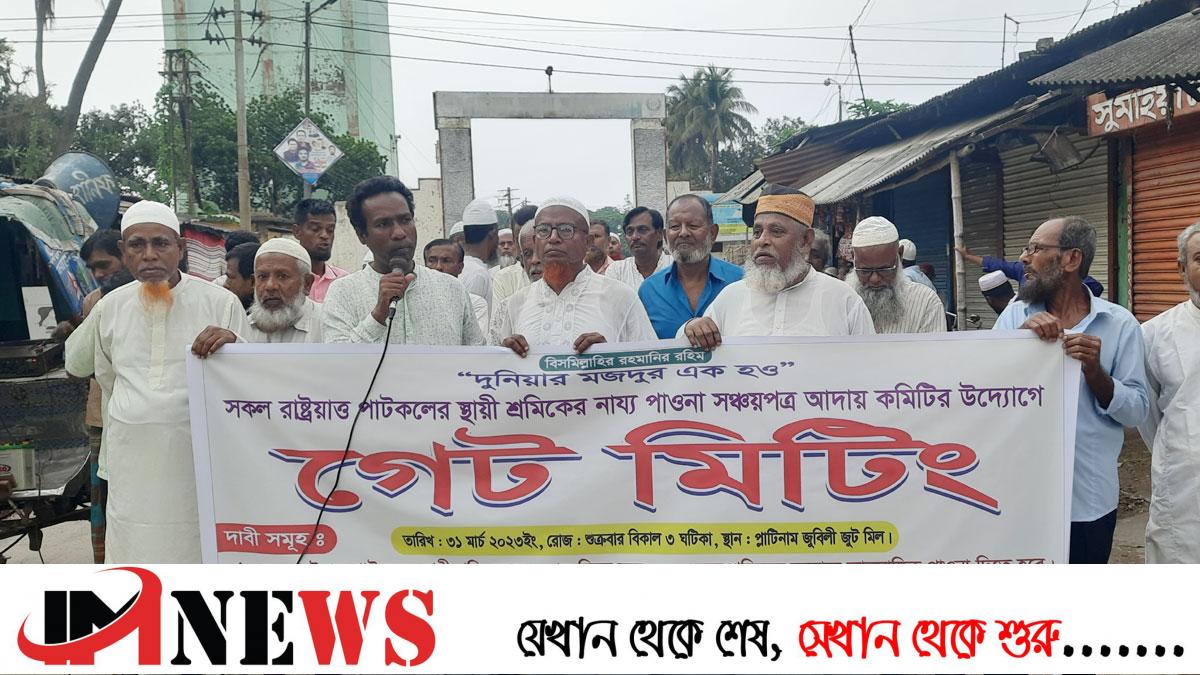 গেট মিটিংয়ে বক্তারা বলেন, ২০২০ সালের ২ জুলাই রাতের অন্ধকারে পাটকল বন্ধ করে দেওয়া হয়। তখন বলা হয়েছিল দুই মাসের মধ্যে শ্রমিকদের পাওনা পরিশোধ করা হবে। তিন মাসের মধ্যে পাটকল চালু করা হবে। অথচ এখনো সকলের পাওনা পরিশোধ ও মিল চালু করা হয়নি। ৪০-৪৩ বছর কাজ করেছি কোনো সমস্যা হয়নি। প্রথম কিস্তির টাকা দিয়েছি তাতেও সমস্যা হয়নি। সঞ্চয়পত্রের সময় বলা হয়েছে নামের ভুল আছে, এফিডেভিট করতে হবে। সেটা করেও জমা দিয়েছি, অথচ প্রায় দুই বছর হতে চলেছে এখনো পাওনা বুঝে পাইনি। আজকে আমরা কর্মহীন। আমাদের ছেলেমেয়েদের লেখাপড়ার খরচ দিতে পারি না। অন্ন, বস্ত্র, চিকিৎসা খরচ দিতে পারি না। আমরা যতদিন টাকা না পাব রাজপথ ছাড়ব না। আমরা ভুখা অবস্থায় প্রয়োজনে ছেলেমেয়েদের নিয়ে রাজপথে নামব। এখনো হাজার হাজার শ্রমিকের পাওনা বকেয়া রয়েছে। আশ্বাস দিলেও শ্রমিকরা পাওনা পাচ্ছেন না। ঈদের আগেই অবহেলিত শ্রমিকদের পাওনা টাকা পরিশোধের দাবি জানান তারা।