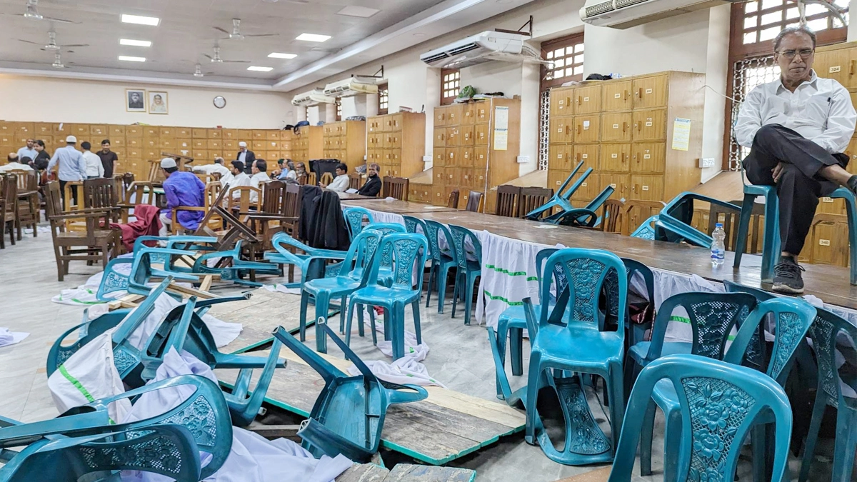 বৃহস্পতিবার বিকেল ৪টায় সমিতির দুটি হল রুমে ইফতার মাহফিলের জন্য নির্ধারিত স্থানে দুই পক্ষের আইনজীবীদের মধ্যে হাতাহাতি ধাওয়া পাল্টা ধাওয়ার ঘটনা ঘটে। এ সময় হল রুমে ইফতার মাহফিলের ব্যানার, চেয়ার টেবিল ভাঙচুর করা হয়।