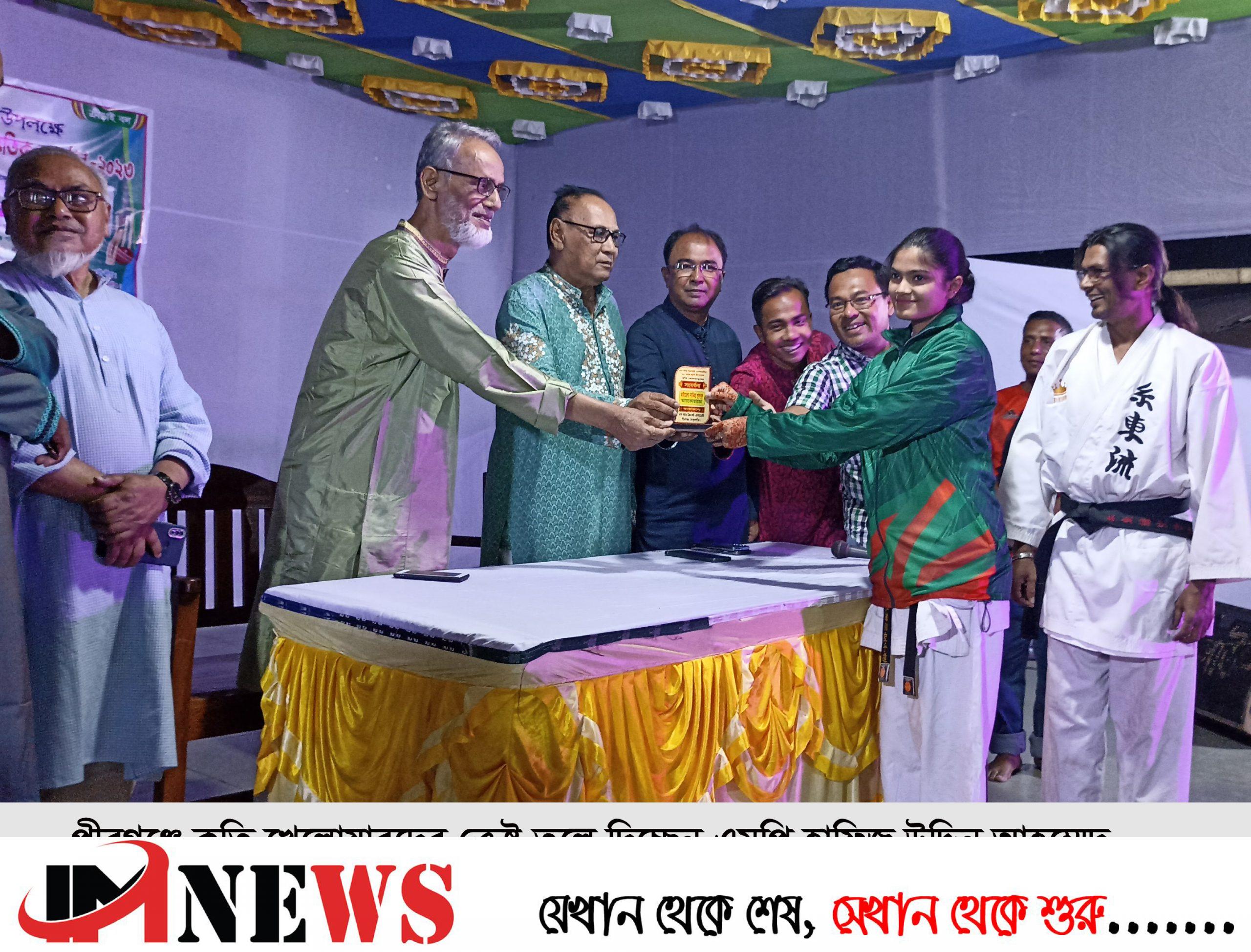 পীরগঞ্জে কৃতি খেলোয়ারদের ক্রেষ্ট তুলে দিচ্ছেন এমপি হাফিজ উদ্দিন আহম্মেদ, সাবেক এমপি ইমদাদুল হক, পৌর মেয়র বীরমুক্তিযোদ্ধা ইকরামুল হকসহ অতিথিরা