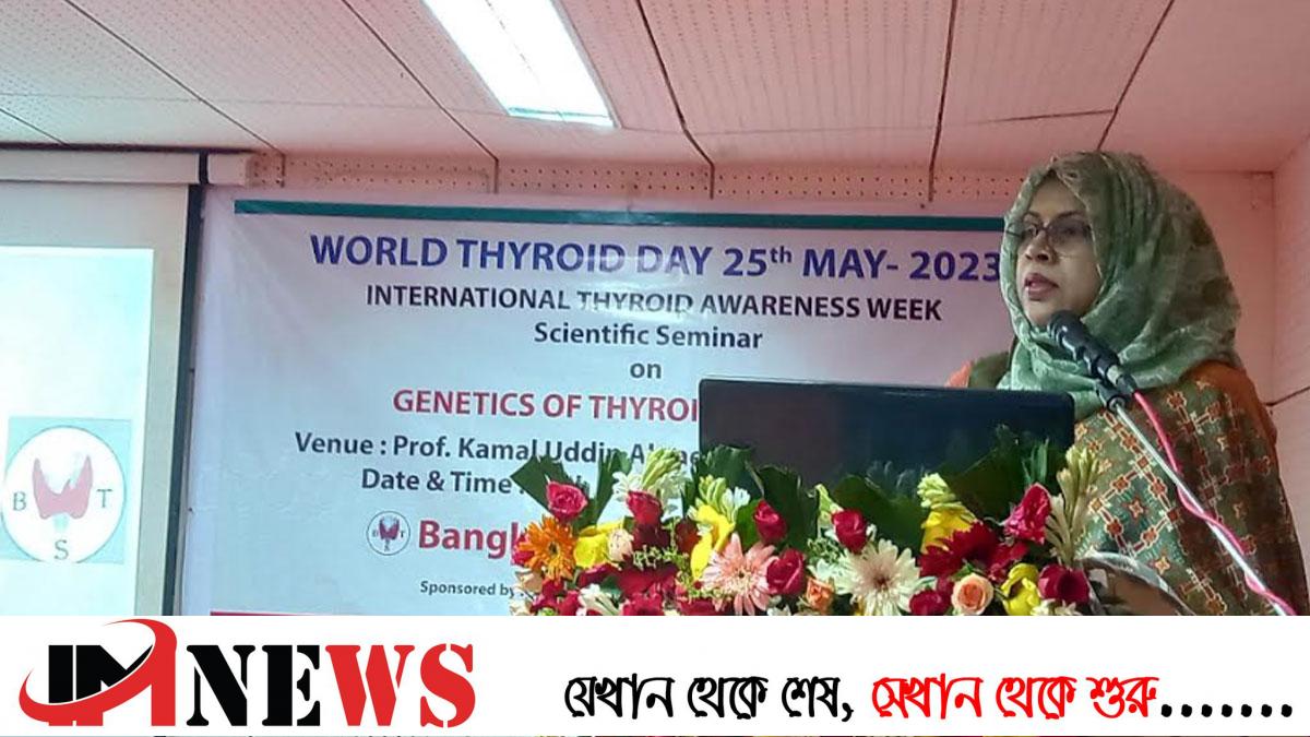 অনুষ্ঠানের মূল প্রবন্ধ উপস্থাপন করেন থাইরয়েড সোসাইটির সাইন্টিফিক সেক্রেটারি অধ্যাপক ডা. নাসরিন সুলতানা। তিনি বলেন, জন্মের দুই সপ্তাহের মধ্যে থাইরয়েড শনাক্ত করা গেলে জন্মগত ত্রুটি চিকিৎসা করে একটি শিশুকে সুস্থ ও স্বাভাবিক জীবনে ফেরানো সম্ভব। এজন্য সরকারিভাবে শিশু জন্মের পর স্ক্রিনিং বাধ্যতামূলক করা দরকার।