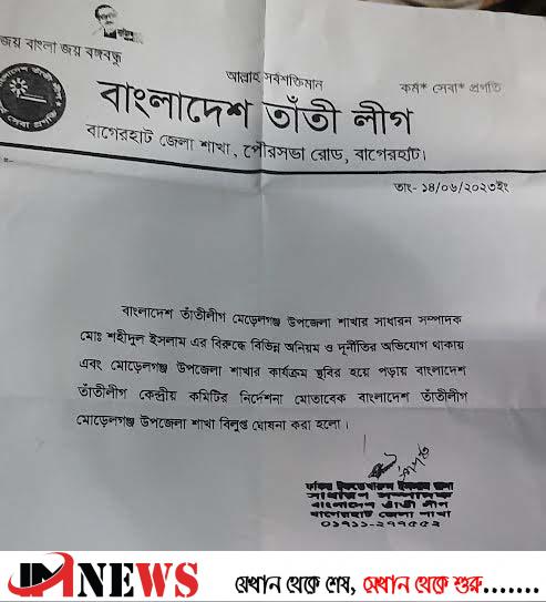 বুধবার (১৪ জুন) রাতে তাতীলীগ বাগেরহাট জেলা শাখার সাধারণ সম্পাদক ফকির ইফতেখারুল ইসলাম রানা স্বাক্ষরিত এক আদেশে এই কমিটি বিলুপ্ত করা হয়।