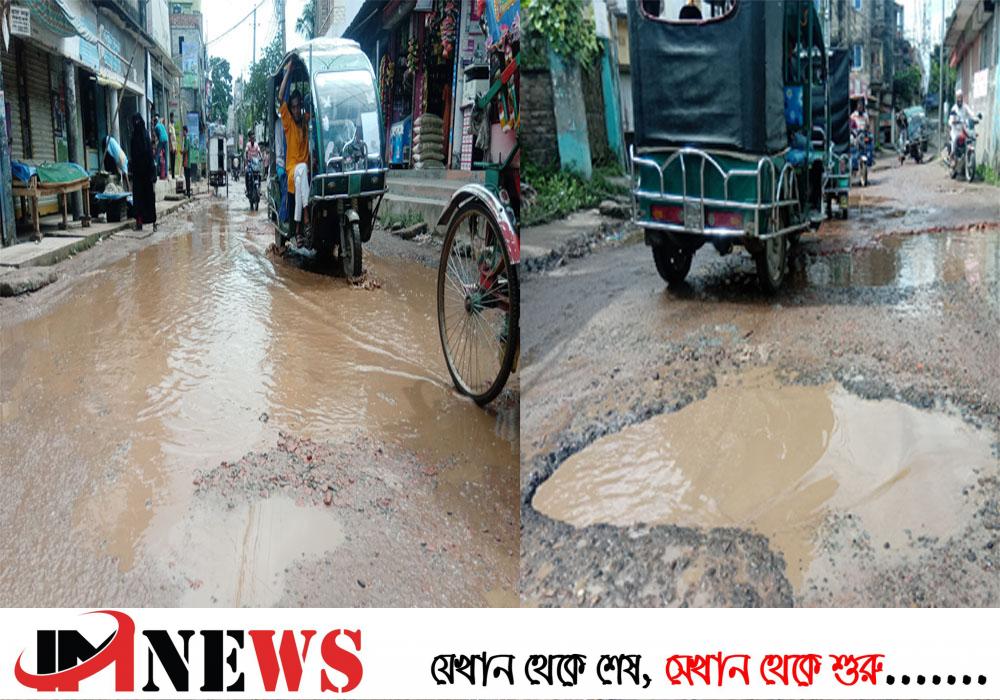 মঙ্গলবার সরেজমিনে ঘুরে দেখা যায়, শহরের গুরুত্বপূর্ণ পয়েন্ট নগুয়া প্রথম মোড় থেকে মোরগমহাল পর্যন্ত প্রায় ১কিলোমিটার সড়ক জুড়ে বড় বড় গর্ত খানা খন্দ। সামান্য বৃষ্টি হলেই গর্তগুলো ডোবায় পরিণত হয়। এসব গর্তে বর্ষার পানি জমে সড়কটি বেহাল হয়ে পড়েছে। পৌরসভার অধিকাংশ সড়কেরই খোয়া উঠে গেছে। এরমধ্যে রয়েছে নগুয়া, মোরগমহাল, আখড়া বাজার, একরামপুর এলাকায় বড় গর্ত সৃষ্টি হয়ে সেখানে খানাখন্দ দেখা দিয়েছে। বর্ষায় সড়কের গর্তে পানি জমে সড়কগুলো বেহাল হয়ে পড়েছে। বিশেষ করে নগুয়া প্রথম মোড়ে কালবার্টটি সাভাবিকের চেয়ে ১ ফুট ডেবে গিয়েছে। মাঝে মধ্যে অটোরিক্সার যাত্রীসহ উল্টে যেতে দেখা যায়। যে কোন সময় ঘটতে পারে বড় ধরণের দুর্ঘটনা।