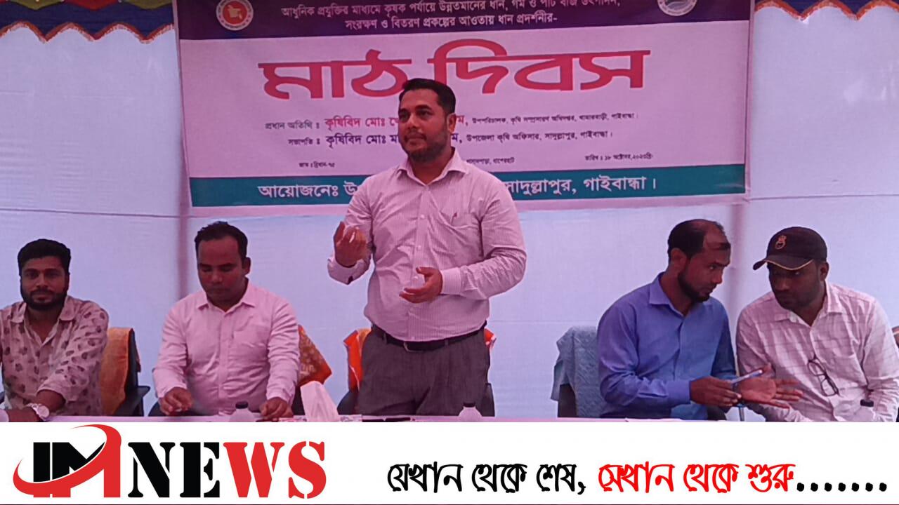 ১৮ অক্টোবর বুধবার বিকেলে সাদুল্লাপুর উপজেলার ধাপেরহাট ইউনিয়নের নিচপাড়া গ্রামের হাসানপাড়া ব্লকে কৃষক রুবেল মিয়ার বাড়ীর উঠানে “কৃষিই সমৃদ্ধি” এই প্রতিপাদ্যকে সামনে রেখে উপজেলা কৃষি অফিসের উদ্যোগে উপজেলা কৃষি অফিসার কৃষিবিদ মোঃ মতিউল আলমের সভাপতিত্বে আয়োজিত অনুষ্ঠানে প্রধান অতিথি হিসেবে উপস্থিত ছিলেন কৃষি সম্প্রসারণ অধিদপ্তর গাইবান্ধা খামারবাড়ির উপ-পরিচালক কৃষিবিদ মোঃ খোরশেদ আলম।