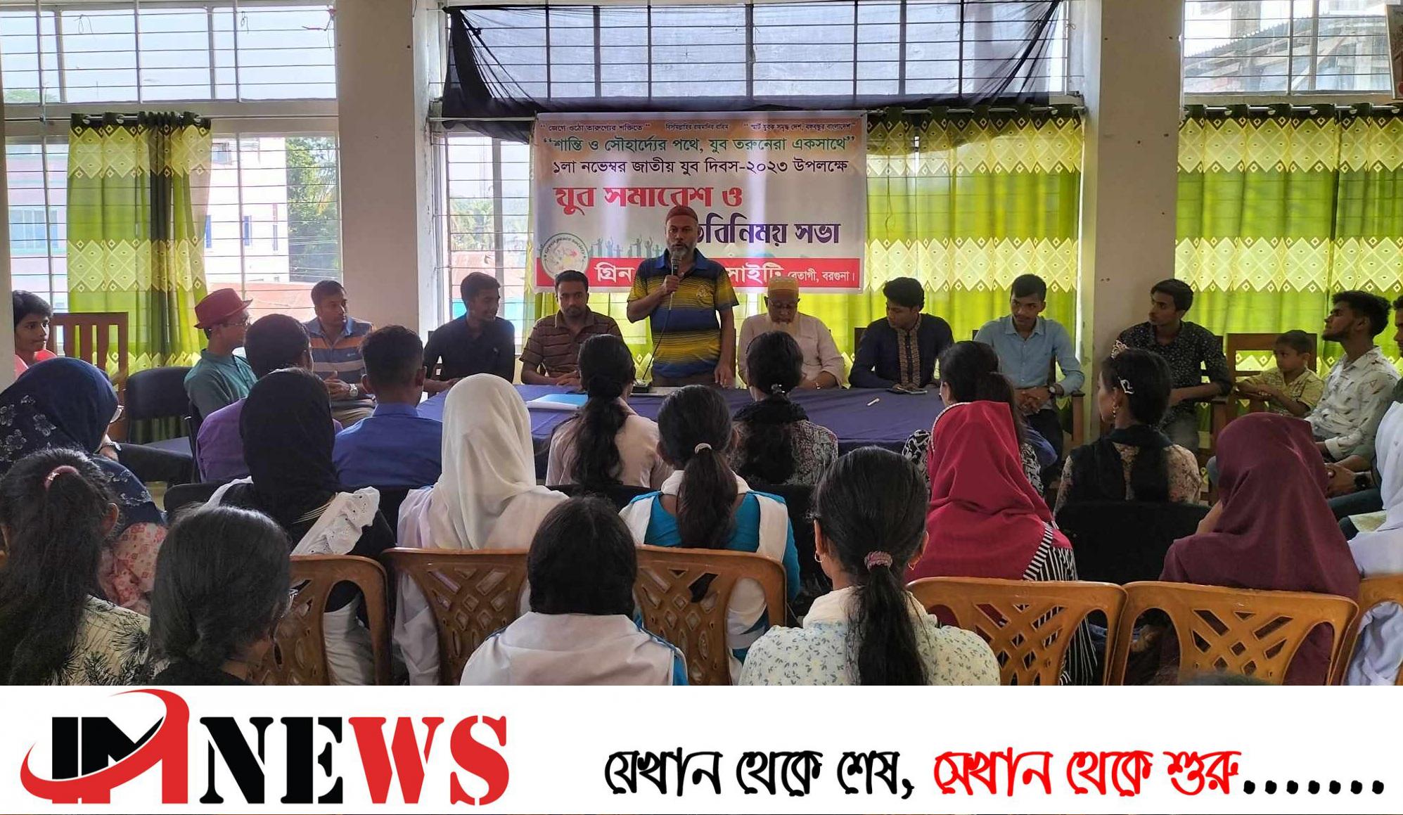 বরগুনা বেতাগীতে জাতীয় যুব দিবস উপলক্ষে  গ্রিন পিস সোসাইটি‘র আয়োজনে যুব সমাবেশ ও আলোচনা সভা অনুষ্ঠিত হয়।