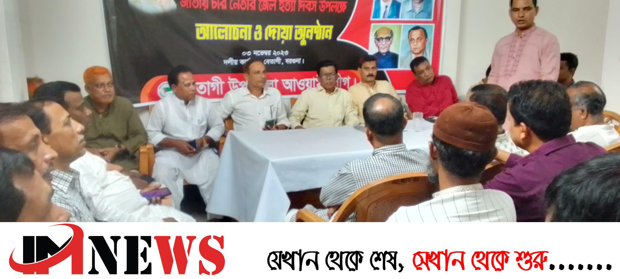 বরগুনার বেতাগীতে জেল হত্যা দিবস উপলক্ষে উপজেলা আওয়ামী লীগের উদ্যোগে আলোচনা সভা ও দোয়া অনুষ্ঠিত হয়েছে।
