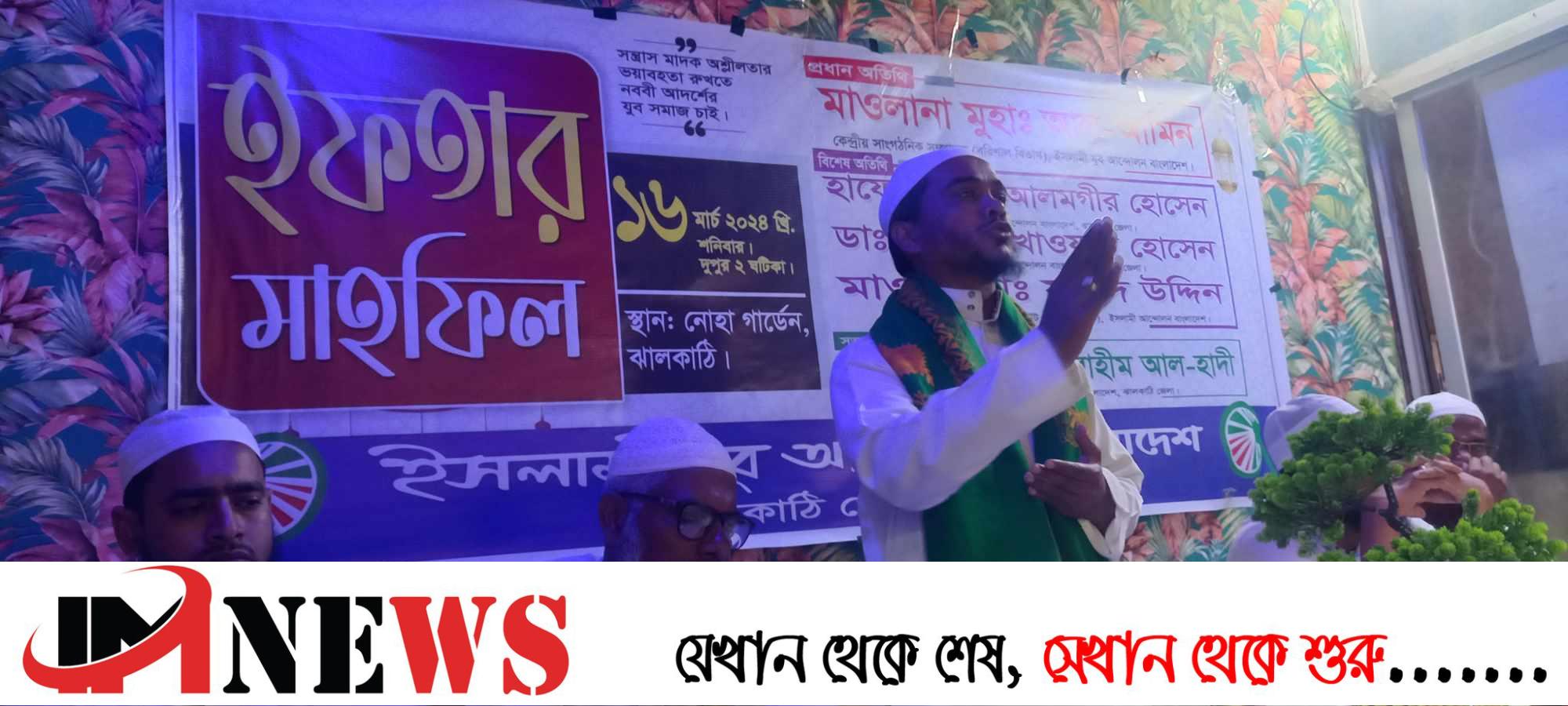 ইসলামী যুব আন্দোলন ঝালকাঠি শাখার উদ্যোগে ইফতার মাহফিল অনুষ্ঠিত হয়েছে। শনিবার বিকেলে শহরের একটি রেস্তোরাঁয় এ ইফতার মাহফিলের আয়োজন করা হয়। এতে প্রধান অতিথি ছিলেন ইসলামী যুব আন্দোলন বাংলাদেশের কেন্দ্রীয় সাংগঠনিক সম্পাদক মাওলানা মুহাম্মদ আল আমিন। বিশেষ অতিথি ছিলেন ইসলামী আন্দোলন বাংলাদেশের ঝালকাঠি জেলা শাখার সভাপতি হাফেজ মুহাম্মদ আলমগীর হোসেন, সেক্রেটারি ডাক্তার মুহাম্মদ শাখাওয়াত হোসেন ও ইসলামী আন্দোলন বাংলাদেশ সৌদি আরব শাখার সহ-সভাপতি মোহাম্মদ ফরিদ উদ্দিন। ইসলামী যুব আন্দোলন বাংলাদেশ ঝালকাঠি জেলা শাখার সভাপতি হাফেজ মাওলানা ইব্রাহীম আল হাদীর সভাপতিত্বে অন্যদের মধ্যে বক্তব্য দেন যুব আন্দোলনের উপজেলা নেতৃবৃন্দ, জেলা ছাত্র আন্দোলনের সভাপতি মো. ইব্রাহীম খলিল, শ্রমিক আন্দোলনের সভাপতি আব্দুল কুদ্দুসসহ স্থানীয় নেতৃবৃন্দ বক্তব্য রাখেন। পরে দোয়া মোনাজাত পরিচালনা করেন মাওলানা মোহাম্মদ মোক্তার হোসেন।