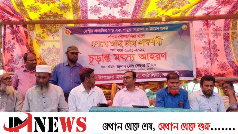 দেশীয় প্রজাতির মাছ ও শামুক সংরক্ষণ ও উন্নয়ন প্রকল্পের আওতায় ঝালকাঠির কাঠালিয়া উপজেলার পশ্চিম শৌলজালিয়া খালে পেনে মাছ চাষ প্রদর্শনীর ২০২১-২২ অর্থ বছরের চূড়ান্ত মৎস্য আহরণ করা হয়েছে। আজ বুধবার দুপুরে পশ্চিম শৌলজালিয়া বিএডিসি কর্তৃক খননকৃত খাল থেকে এ মৎস্য আহরণ করা হয়।