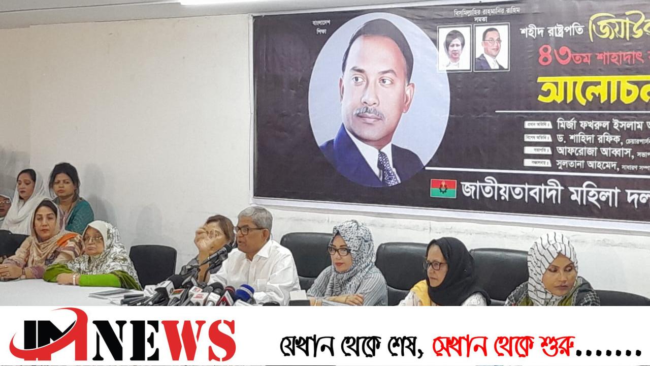 সোমবার (৩ মে) রাজধানীর জাতীয় প্রেস ক্লাবে এক আলোচনা সভায় এসব কথা বলেন তিনি। বিএনপির প্রতিষ্ঠাতা জিয়াউর রহমানের মৃত্যুবার্ষিকী উপলক্ষ্যে এ সভার আয়োজন করে মহিলা দল।