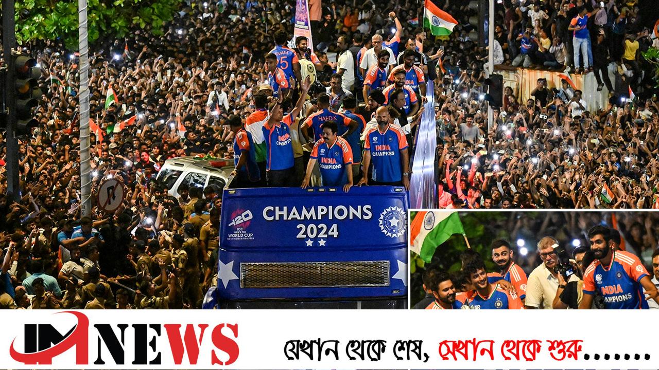 এমন আনন্দঘন মুহূর্তে বিশ্বচ্যাম্পিয়ন ক্রিকেটারদের ছুঁয়ে দেখতে ওয়াংখেড়ে স্টেডিয়াম উন্মুক্ত করে দেওয়া হয় সমর্থকদের জন্য। তার আগে স্টেডিয়ামে যাওয়ার পথে ছাদখোলা বাসের মাথায় ট্রফি নিয়ে উল্লাস করছেন রোহিত-কোহলি-হার্দিক-পান্ত ও সূর্যকুমাররা। রোহিতদের দেখতে রাস্তার ধারে গাছের ওপরেও উঠে পড়েছেন সমর্থকদের কেউ কেউ।