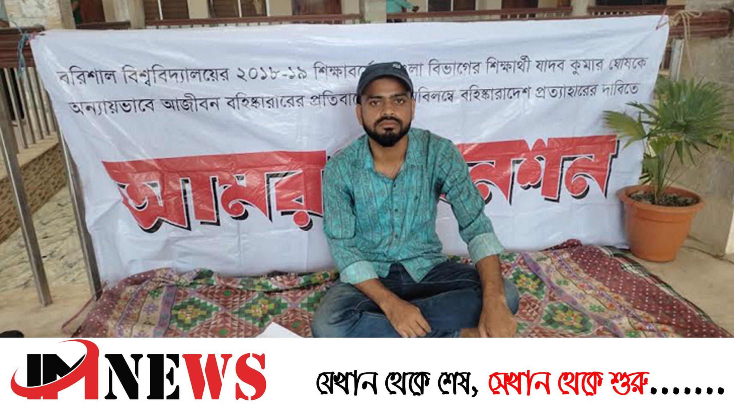 আজীবন বহিষ্কারাদেশ প্রত্যাহারের দাবিতে আমরণ অনশনে বসেছে বরিশাল বিশ্ববিদ্যালয় (ববি) এর ২০১৮-১৯ শিক্ষাবর্ষের স্নাতক বাংলা বিভাগের চতুর্থ বর্ষের শিক্ষার্থী যাদব কুমার ঘোষ। বুধবার (১০ জুলাই) সকাল থেকে বিশ্ববিদ্যালয়ের প্রশাসনিক ভবনের নিচতলায় ব্যানার টানিয়ে এ কর্মসূচি পালন শুরু করে ওই শিক্ষার্থী।