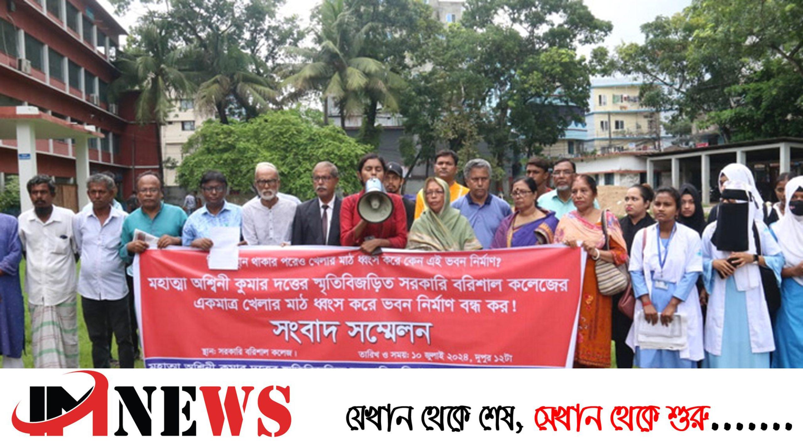 সরকারি বরিশাল কলেজের শিক্ষার্থীদের একমাত্র খেলার মাঠ রক্ষা করার দাবিতে সংবাদ সম্মেলন অনুষ্ঠিত হয়েছে। বুধবার (১০ জুলাই) বেলা ১২টায় সরকারি বরিশাল কলেজের তমাল তলায় এ সংবাদ সম্মেলনের আয়োজন করে ‘মহাত্মা অশ্বিনী কুমার দত্তের স্মৃতিবিজড়িত সরকারি বরিশাল কলেজের মাঠ রক্ষা কমিটি’।