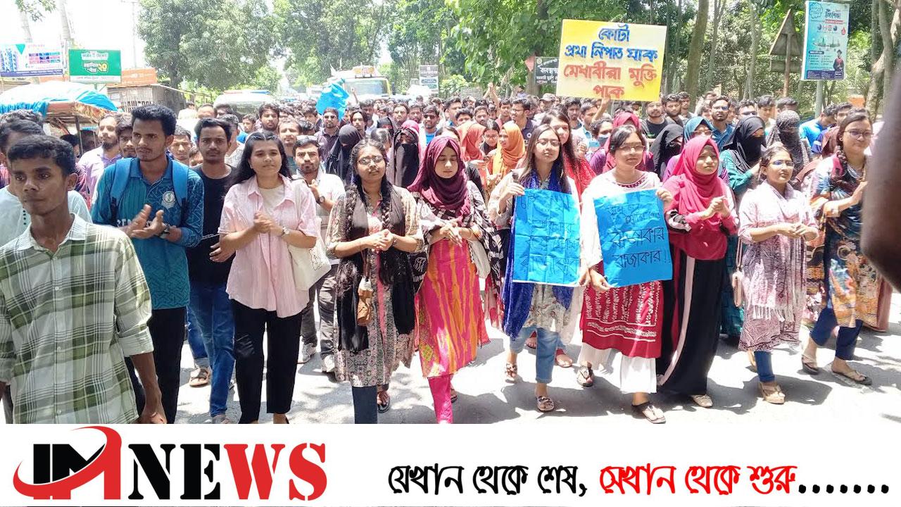 বিক্ষোভ মিছিলে কোটা সংস্কার আন্দোলনকারী শিক্ষার্থীরা স্লোগানে স্লোগানে মুখরিত করে তুলেন। পরে মহাসড়ক অবরোধ করে বিক্ষোভ করেন। এতে করে দিনাজপুর-দশমাইল মহাসড়কে শত শত যানবাহন আটকা পড়ে। এ সময় শিক্ষার্থীদের ফেস্টুন ও প্ল্যাকার্ডে লেখা ছিল ‘কোটা প্রথা নিপাত যাক মেধাবীরা মুক্তি পাক’, ‘চাইলাম অধিকার হয়ে গেলাম রাজাকার’, ‘তুমি কে আমি কে রাজাকার রাজাকার’, ‘অযৌক্তিক কোটা সংস্কার চাই।’ এভাবে মহাসড়কে অবস্থান নিয়ে প্রায় দুই ঘণ্টা অবরোধ করে বিক্ষোভ করেন আন্দোলনকারী শিক্ষার্থীরা।