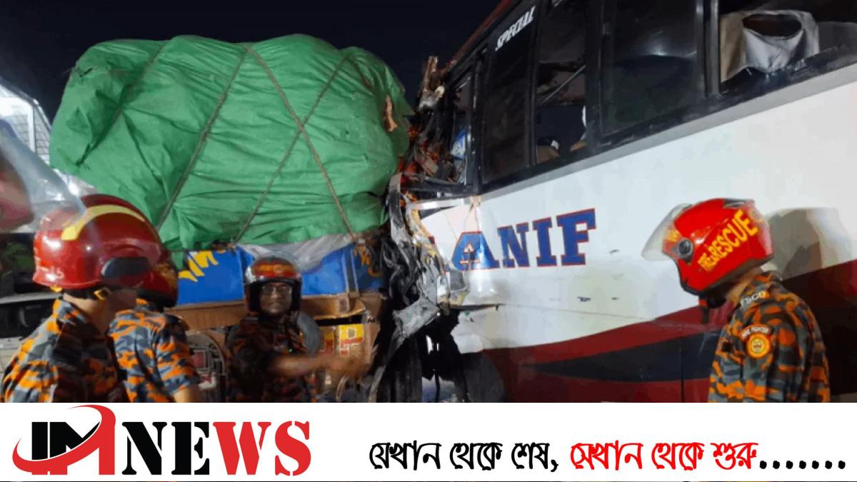 স্থানীয়রা জানায়, ঢাকামুখী হানিফ পরিবহনের একটি বাস ট্রাকের পেছনে সজোরে ধাক্কা দিলে দুর্ঘটনাটি ঘটে।